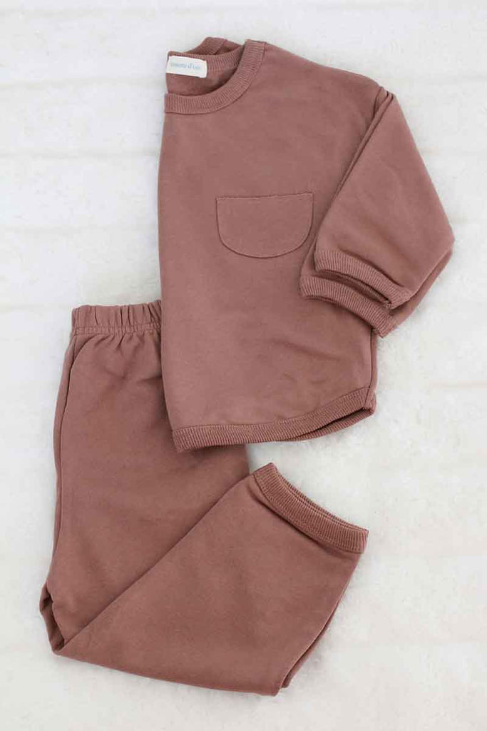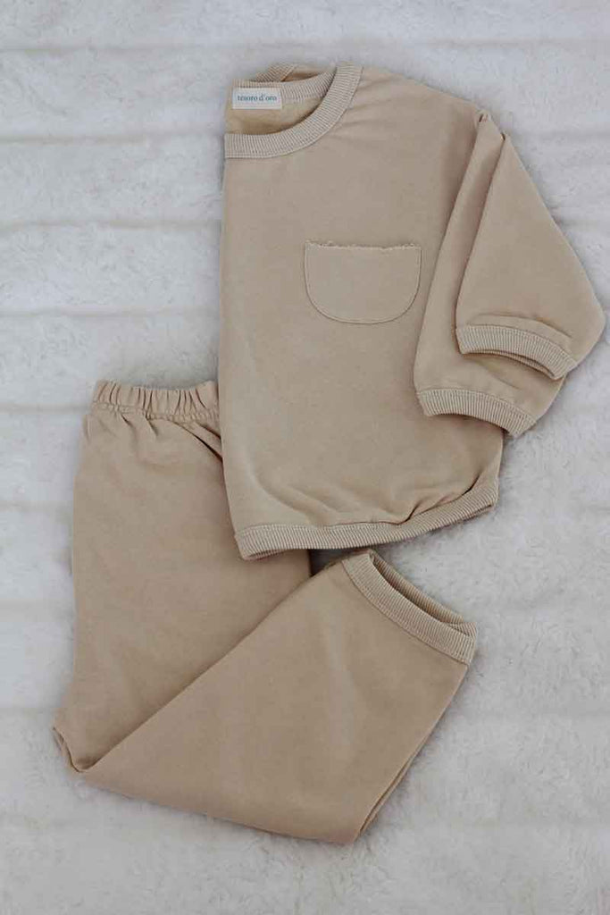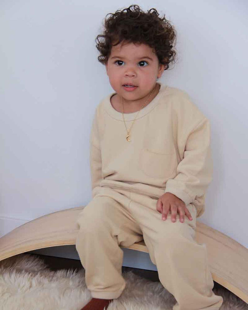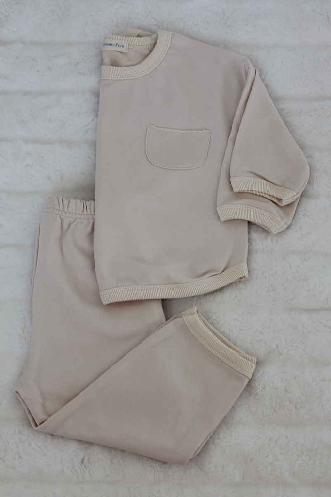 The unisex winter essential. 100% cotton tracksuit sets are made with beautifully soft cotton, with detail on the arm and leg hem. This perfect oversized slouchy look is warm, light and super comfortable for all treasures from 3-6 years.